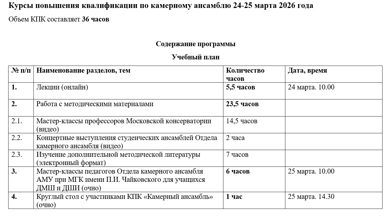 Курсы повышения квалификации по камерному ансамблю 24-25 марта 2026 года.